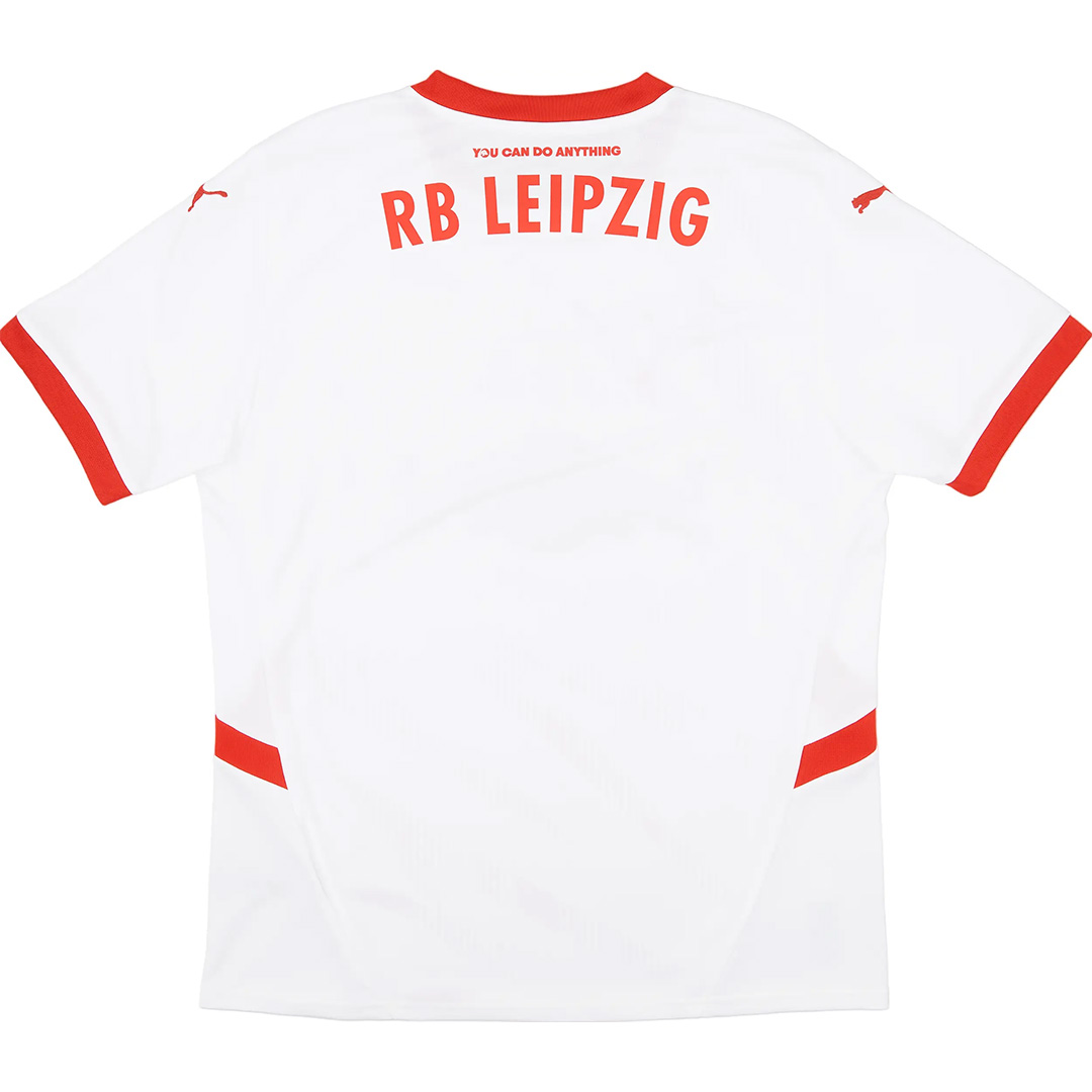 The RB Leipzig 2024-2025 home jersey has a modern design in the club's white and red colors.